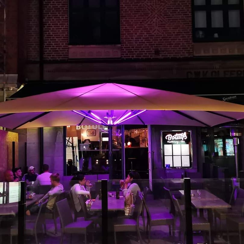 Grillad fläskkarré, stekt potatis, champinjonsås.